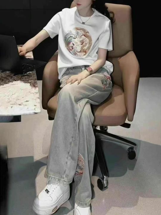 279件新中式国风复古龙纹刺绣圆领短袖,单款两色(白色多),独立包装!码数:1-4,高克重95拉架棉面料,弹力大,(图片仅供参考,一切以实物为准)