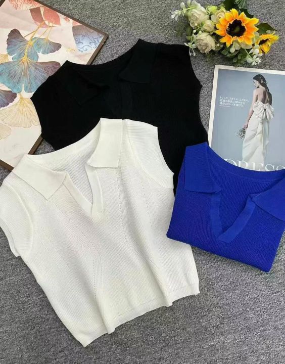 夏季新款Polo领纯色翻领镂空针织短袖T恤,独立包装,...