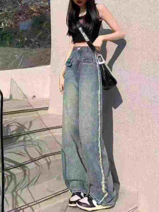 全清14.5设计感毛边牛仔裤女春秋新款,高腰显瘦百搭阔腿直筒拖地裤,独立包...