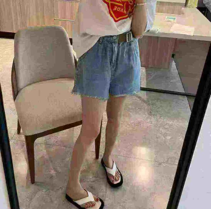 全清价7.9元捡漏70条女高腰时尚百搭水洗浅色设计感休闲皮带松紧腰牛仔短裤...