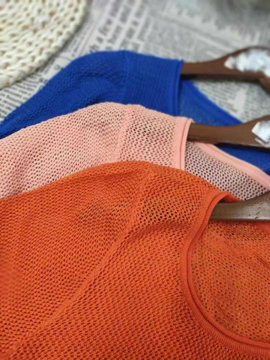 女装夏季拼接透气针织衫,单款4色总数量348件,独立包装