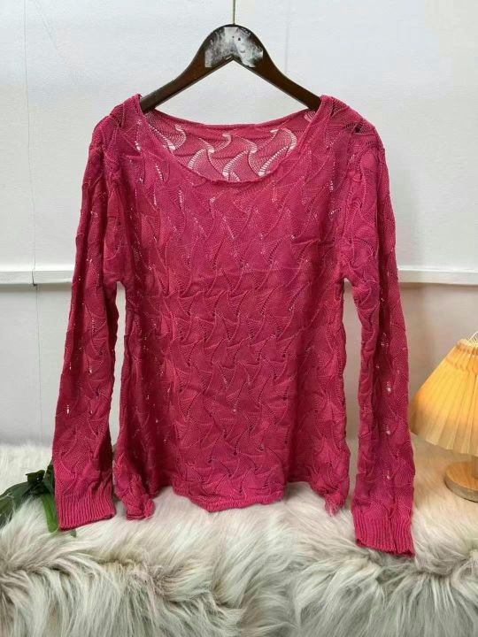 设计感小众镂空宽松百搭圆领针织衫女装,数量139件,均码,独立包装,单款五色,全清5.8