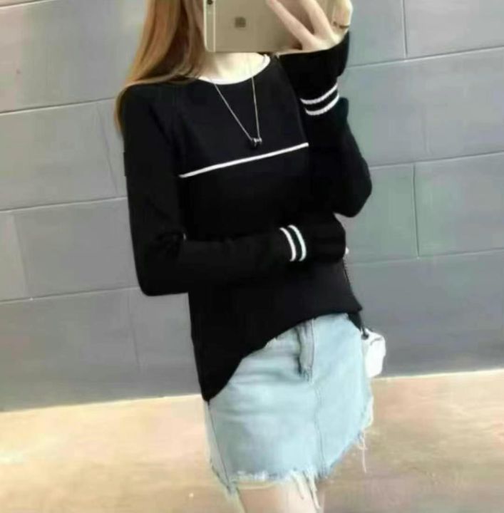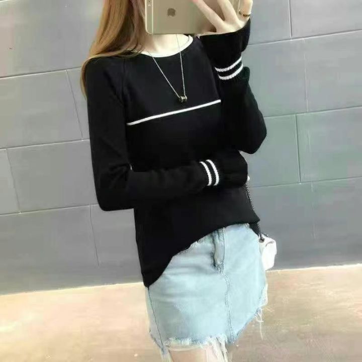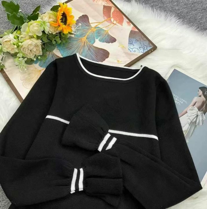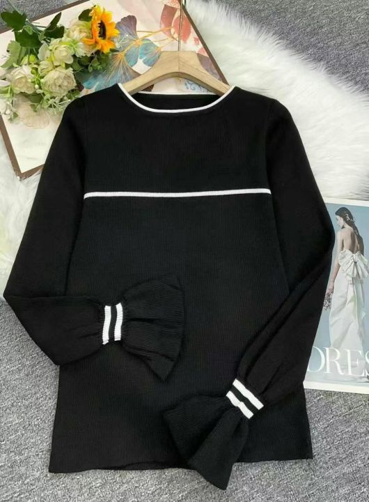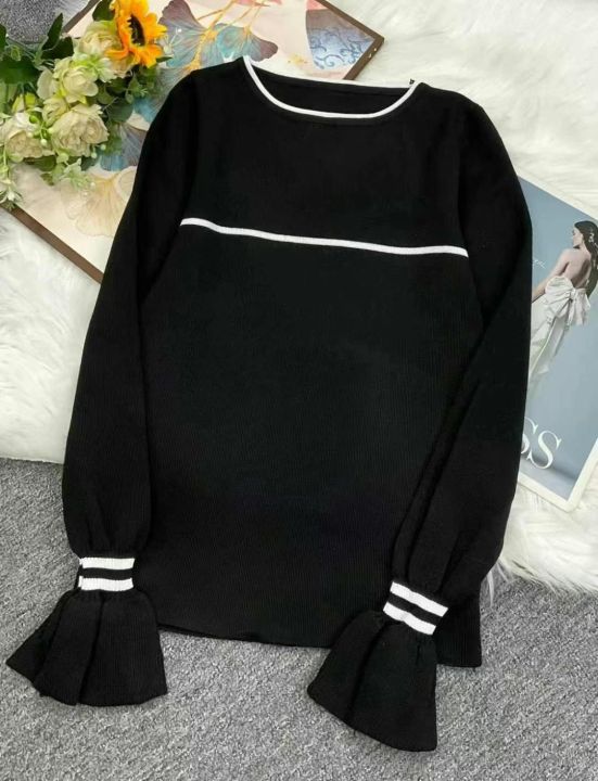 春秋新款弹力修身显瘦喇叭袖圆领套头毛衣,独立包装,...