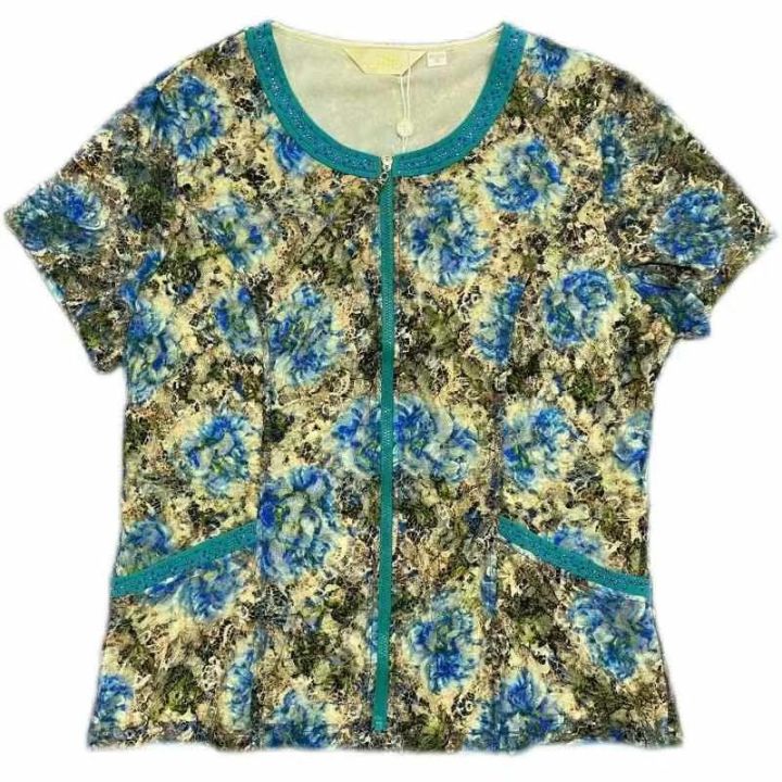 高品质台湾纱妈妈装圆领开衫修身短袖上衣,双层统一锦...