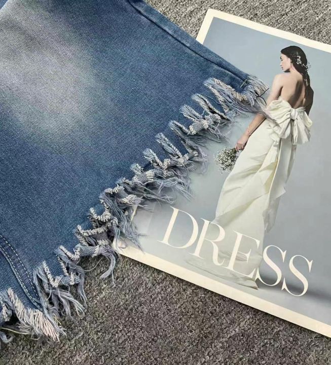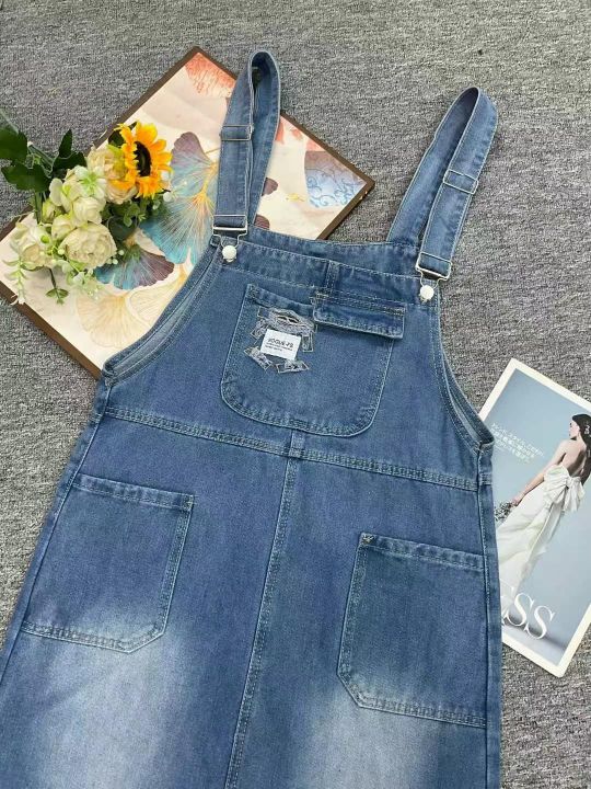 夏季新款洗水棉宽松显瘦毛边中长款牛仔背带裙,独立包...