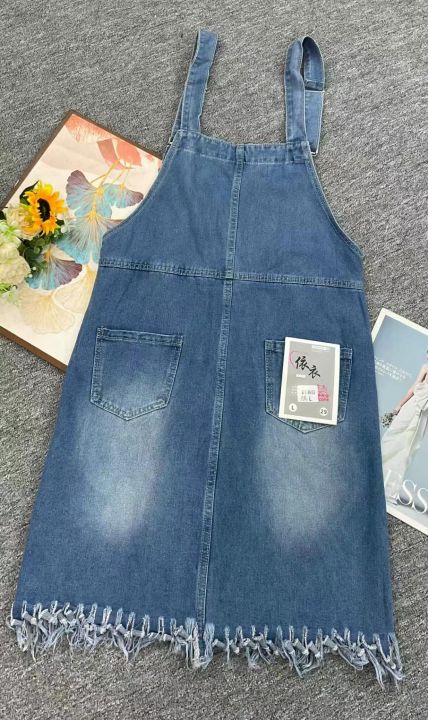 夏季新款洗水棉宽松显瘦毛边中长款牛仔背带裙,独立包装带腰卡,码数S-XL码,190件,全清11.8元超低价秒杀!