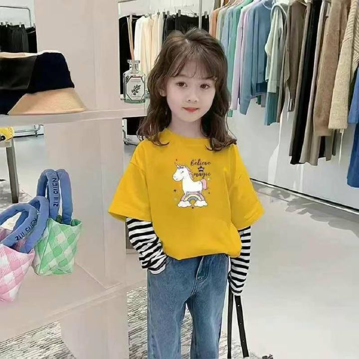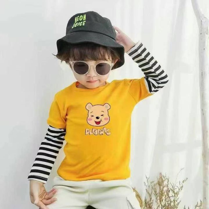 编号:[3755] ¥3.8元 童装/儿童服装 上衣 长袖T恤卫衣 套头 春秋款 纯棉假两件卡通印花拼接长袖T恤花型图案多90到150码独立包装 库存:350