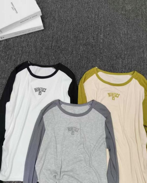 【943 款】撞色短款修身打底衫女秋季新款内搭螺纹长袖T恤 148 件,单款三色独立包装,码数 M-4XL,全清价 5.8 秒杀[烟花][烟花][烟花]