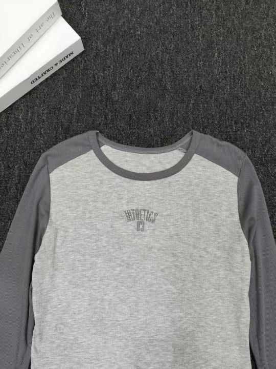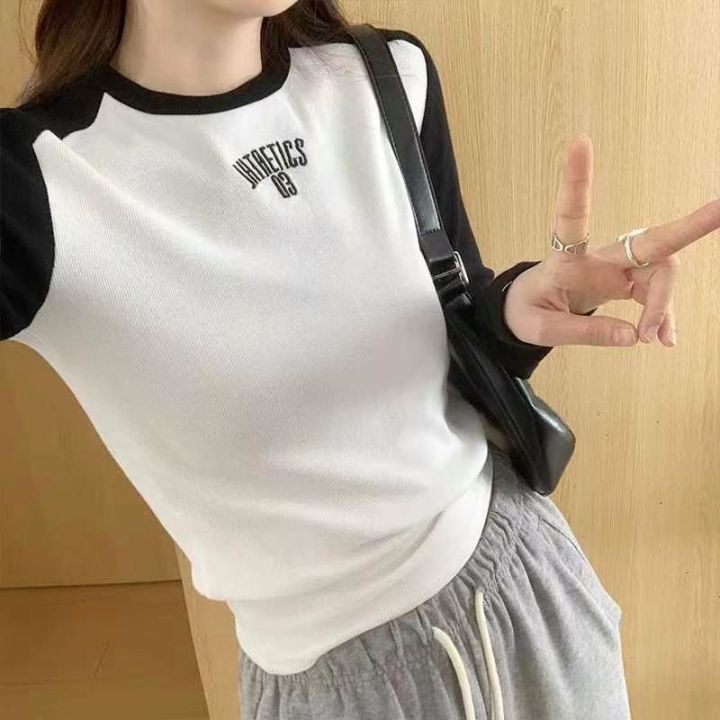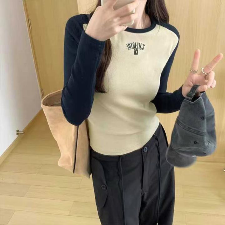 【943 款】撞色短款修身打底衫女秋季新款内搭螺纹长袖...