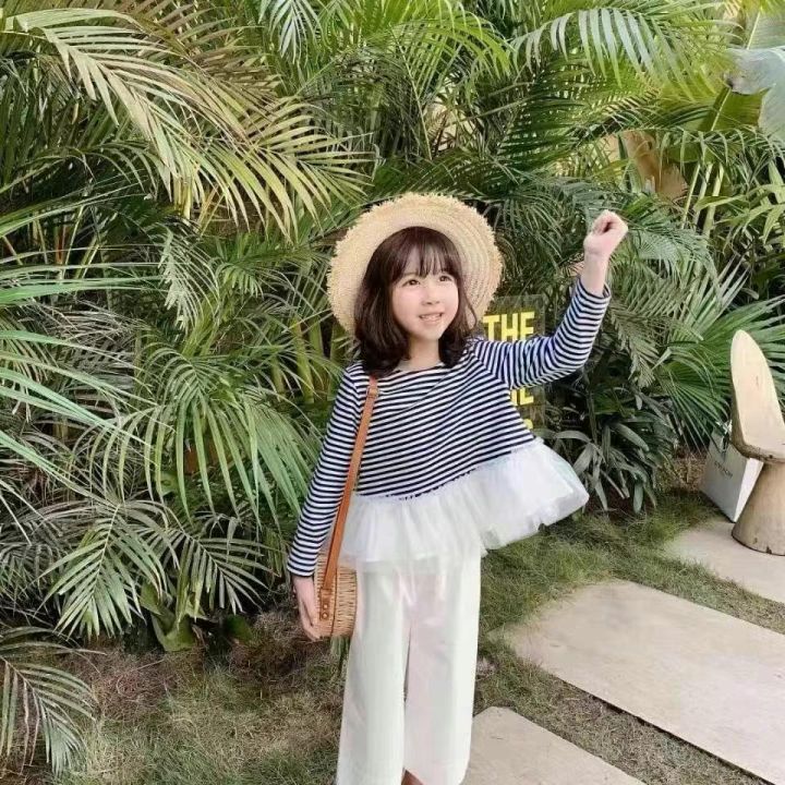 女童长袖T恤春装新款洋气儿童条纹公主上衣时髦小女孩...