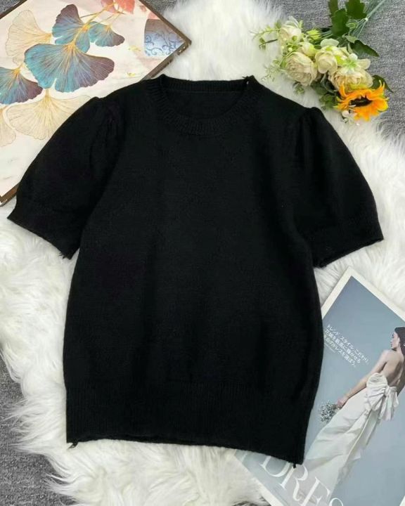 夏季新品泡泡袖小香风针织套头短袖,独立包装,均码面料软糯舒适弹力大,60件左右,全清5.9元超低价秒杀!