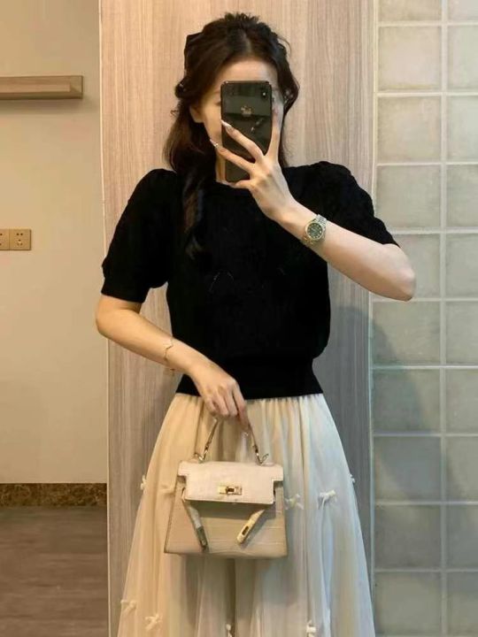 夏季新品泡泡袖小香风针织套头短袖,独立包装,均码面...