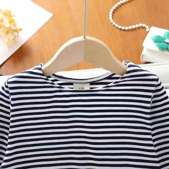 女童长袖T恤春装新款洋气儿童条纹公主上衣时髦小女孩...