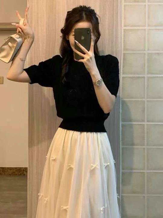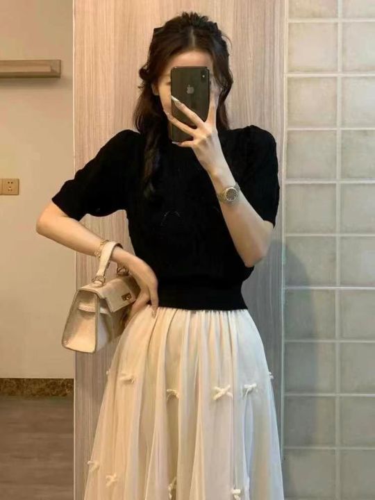 夏季新品泡泡袖小香风针织套头短袖,独立包装,均码面...