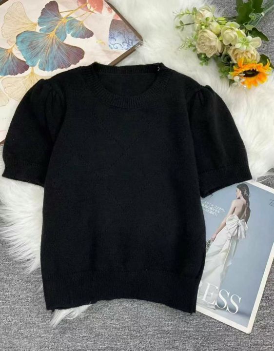 夏季新品泡泡袖小香风针织套头短袖,独立包装,均码面料软糯舒适弹力大,60件左右,全清5.9元超低价秒杀!