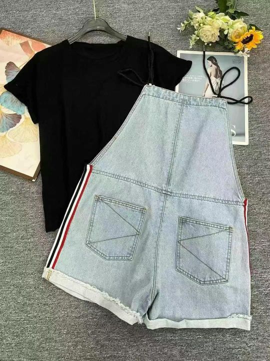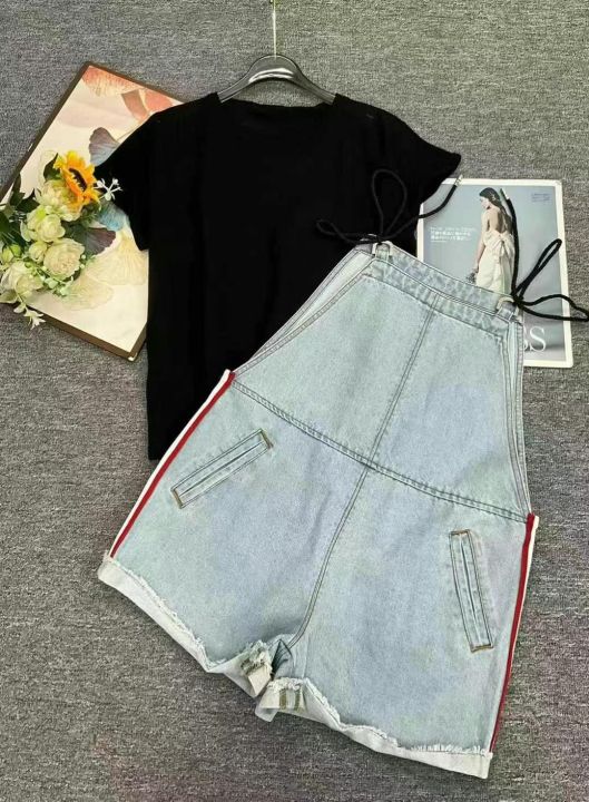 新款夏季宽松韩版百搭减龄显瘦冰丝针织小衫+阔腿牛仔背带裤短,独立包装,码数S--XL码,90套,全清11.8元超低价秒杀!