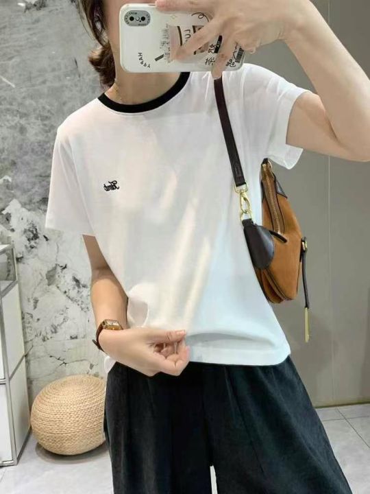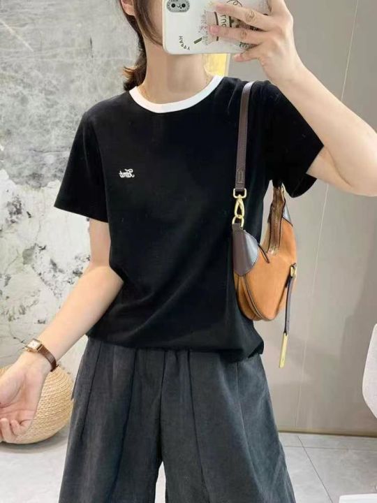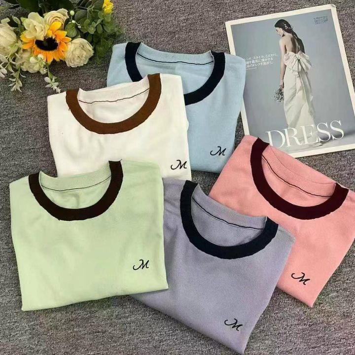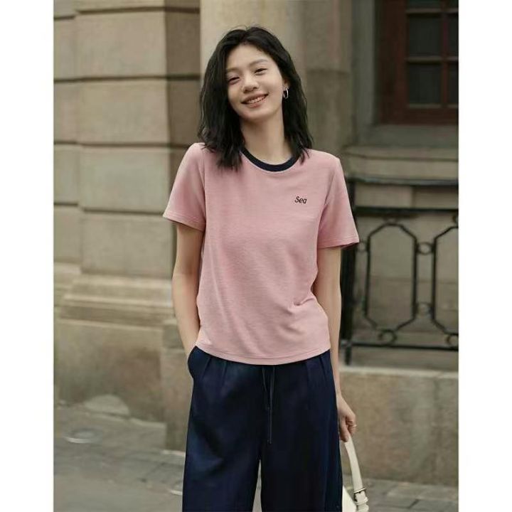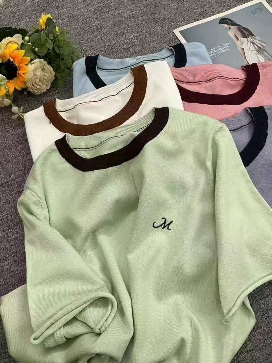 夏季新款宽松百搭设计感小众撞色圆领刺绣字母冰丝针织...