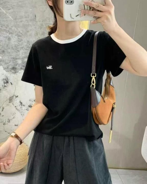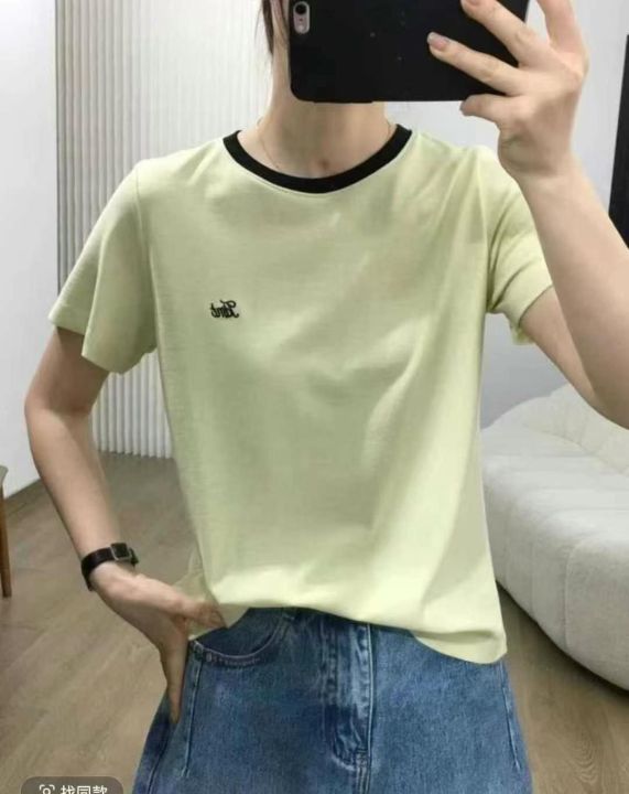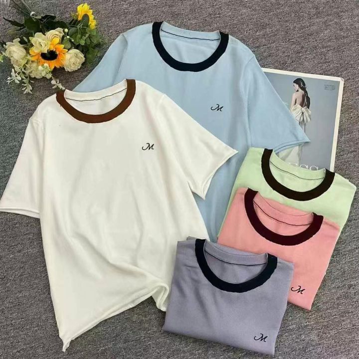 夏季新款宽松百搭设计感小众撞色圆领刺绣字母冰丝针织短袖T恤,独立包装,均码宽松款,面料柔软舒适弹力大,210件,全清6.9元超低价秒杀!分货加一!
