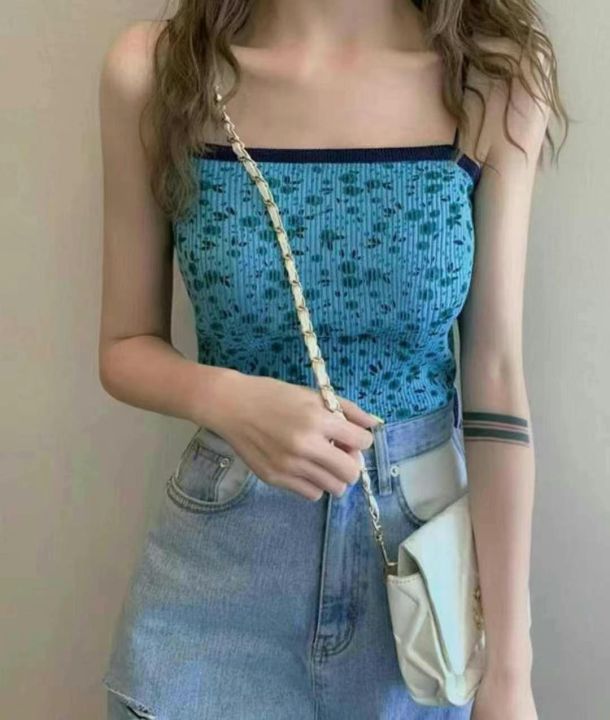 夏季新款设计感法式碎花弹力吊带背心,独立包装,680...
