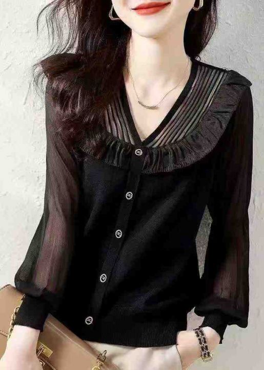 气质小香风针织衫211件8.9,面料柔软舒适,有弹力,品质好拼接设计,荷叶边...