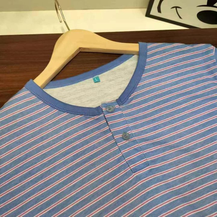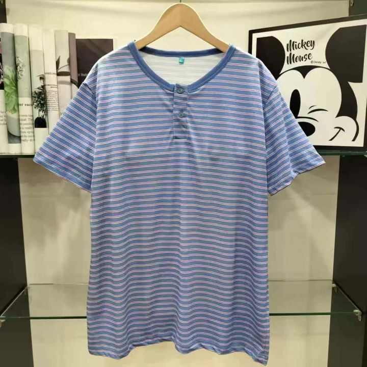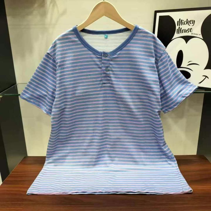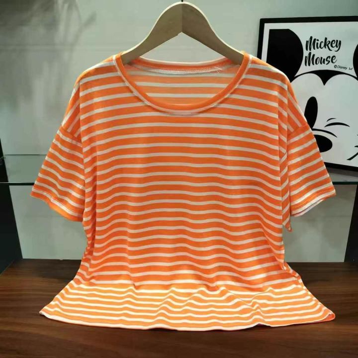 蓝色条纹纽扣设计感短袖T恤女2025夏季新款半开领宽松显瘦上衣,橙色只有十几件,独立包装,M-L,320件左右,4.5元