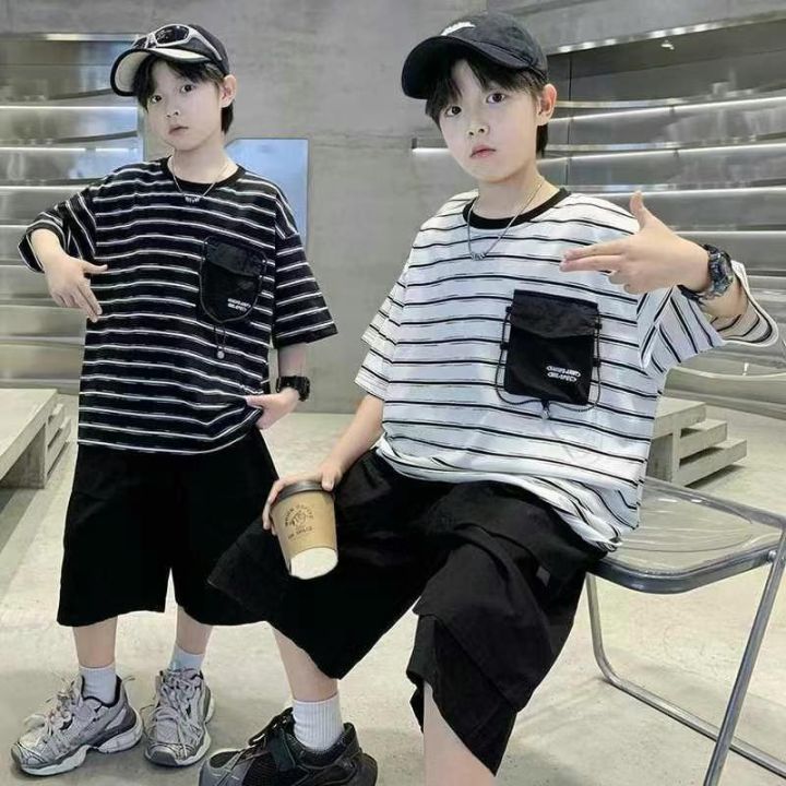男女童纯棉夏装新款韩版洋气中大童短袖两件套,5一17...