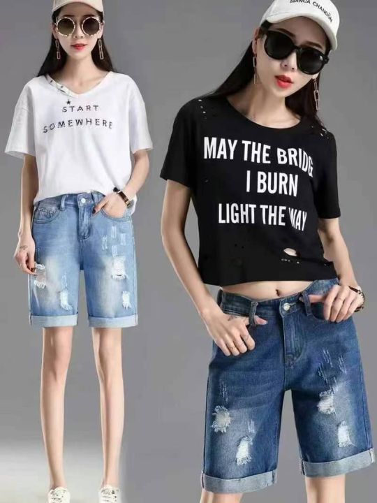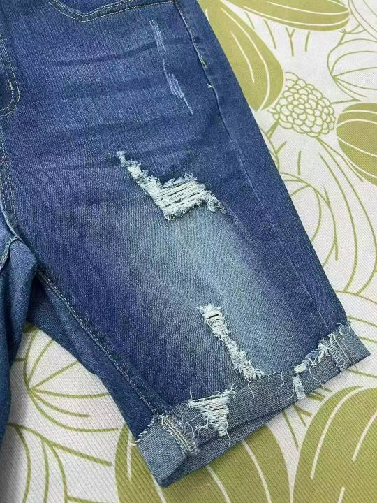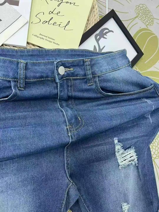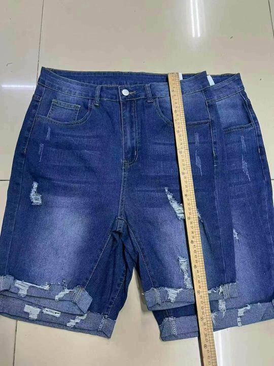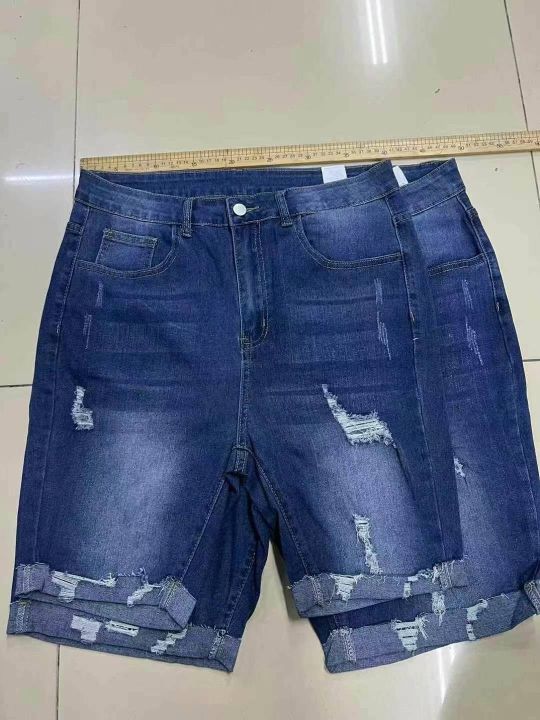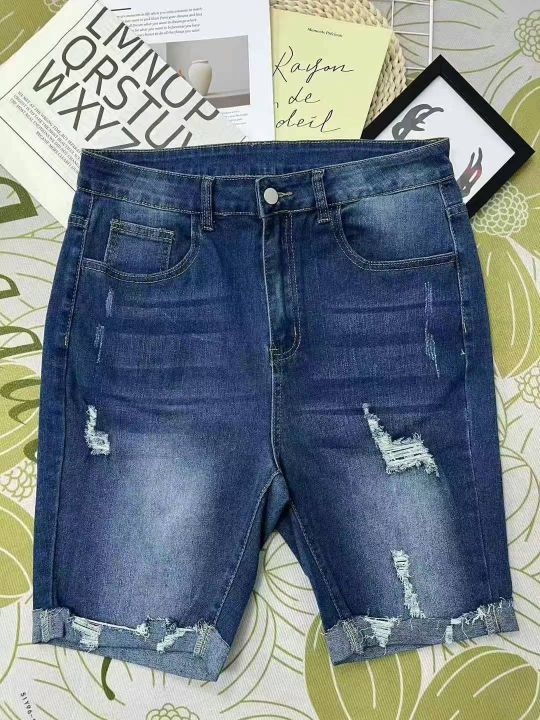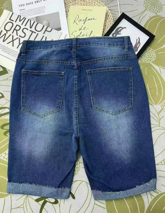 编号:[4096] ¥9.9元 女装/女士服装 裤子 短裤 牛仔短裤 外贸弹力大码牛仔中裤弹力牛仔破洞显瘦卷边130-200斤韩版直筒裤0xl到5xl 分货加:1 库存:520