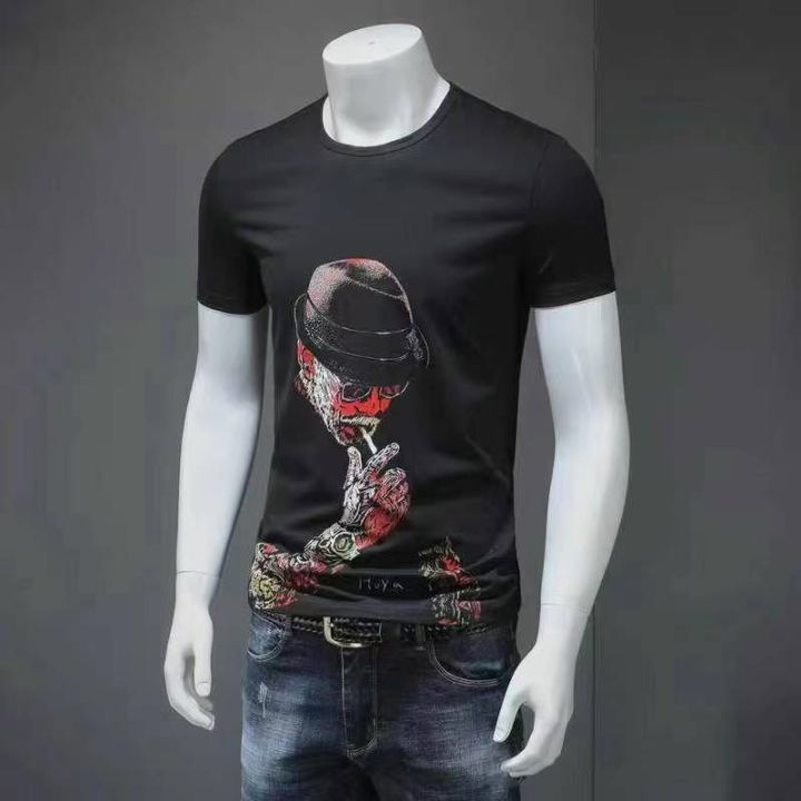 编号:[4079] ¥7.8元 男装/男士服装 上衣 短袖/无袖 T恤 潮牌印花T恤纯棉丝光棉骷颅头印花个性款M-5XL原包装高品质 分货加:1 库存:164