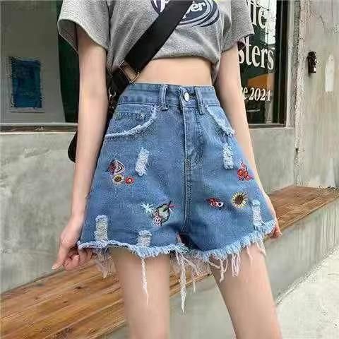 夏季新款重工刺绣胖妹妹毛边高腰宽松阔腿牛仔短裤,独立包装带吊牌,码数S--5XL码, 330件,全清6.8元超低价秒杀!