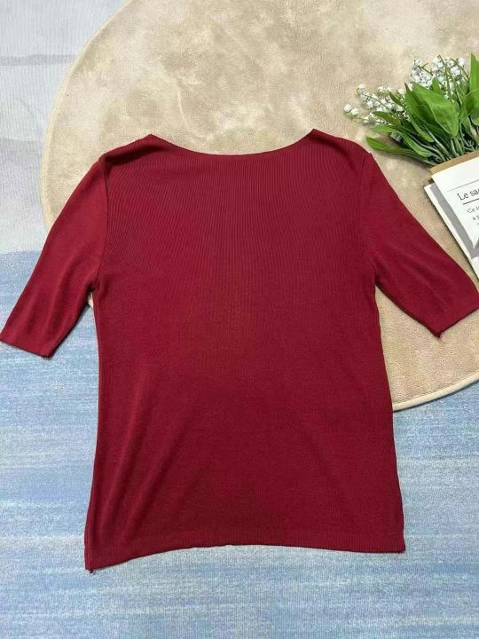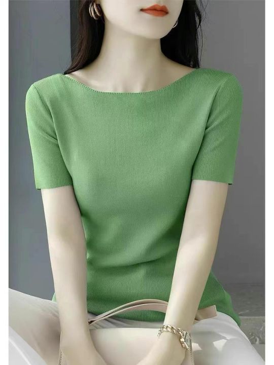 淘宝爆款洋气一字领冰丝短袖针织衫夏季新款,百搭显瘦...