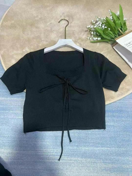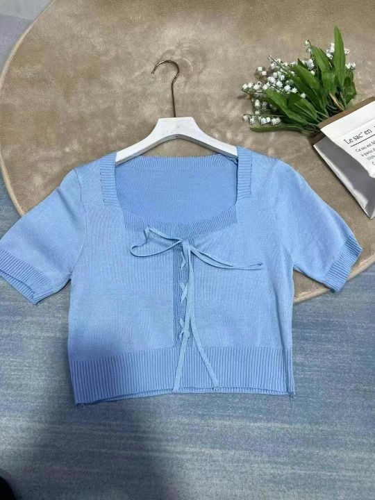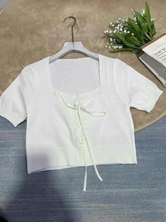 淘宝在售爆款法式甜美方领糖果色短袖t恤女,2025春夏新款温柔风小众别致针织上衣,总数590件,均码,独立原包装,全清6.8元,分货加0.5元