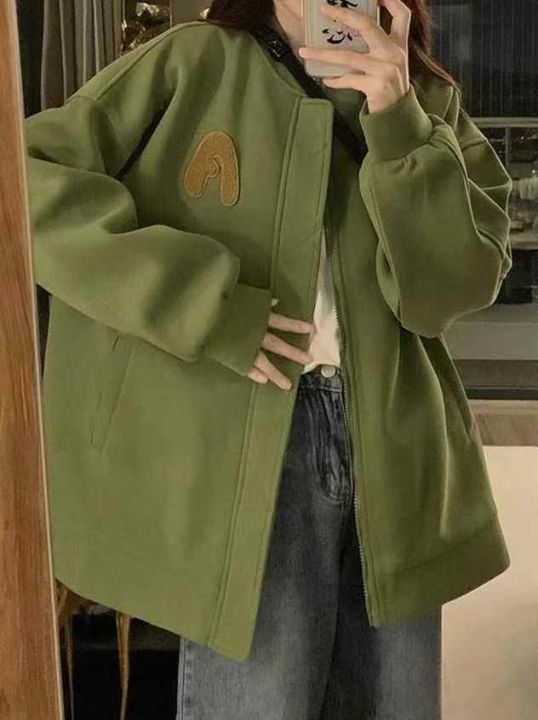 [月亮]:情侣款植绒刺绣棒球服拉链厚实外套