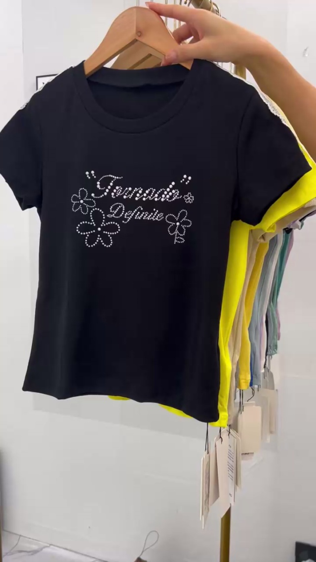 全清8.8元/清334件品牌甜辣风蕾丝花边重工汤钻靓妹短袖,单款多色多图,均...
