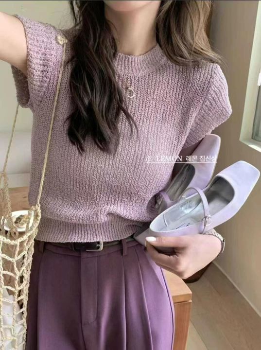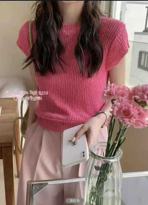 法式夏日多巴胺穿搭简约净版冰丝针织短袖T桖,独立包...