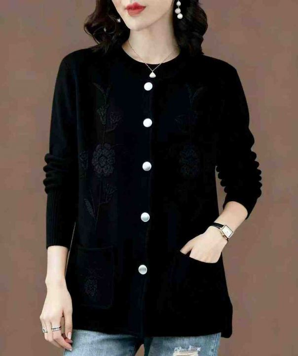 秋冬新款宽松百搭慵懒风轻熟妈妈装提花加厚款包芯纱毛衣开衫,独立包装,2...