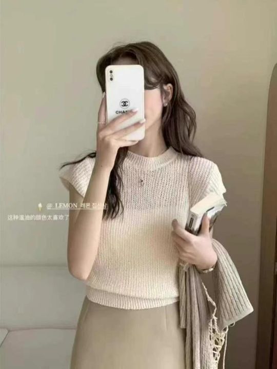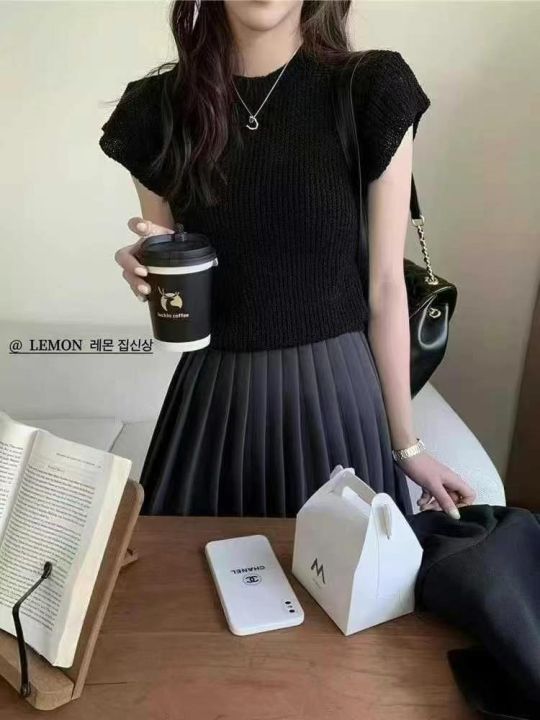 法式夏日多巴胺穿搭简约净版冰丝针织短袖T桖,独立包...