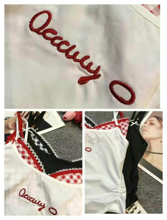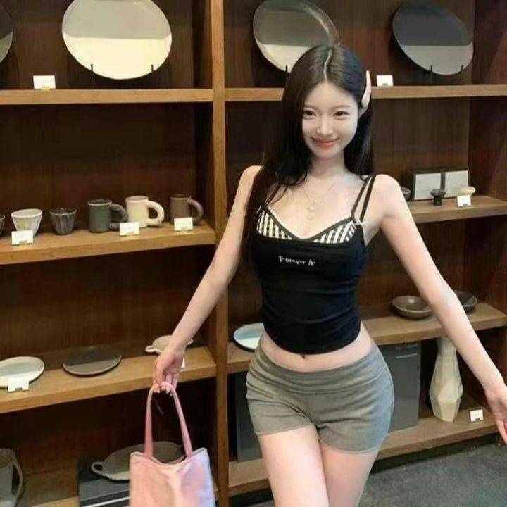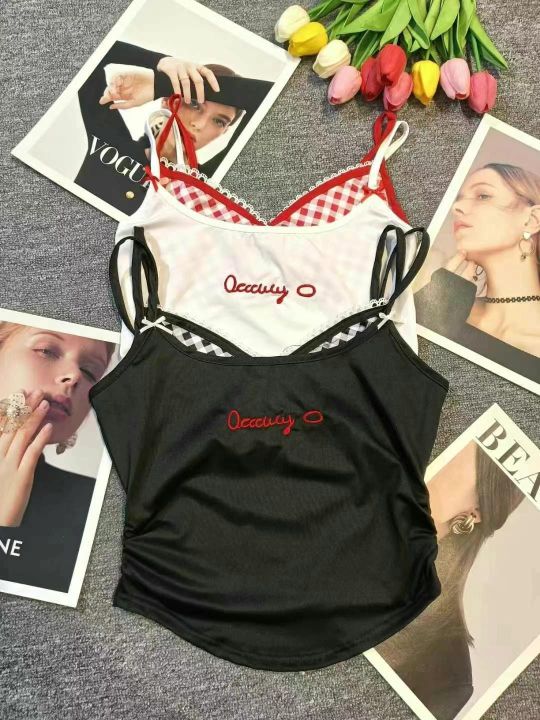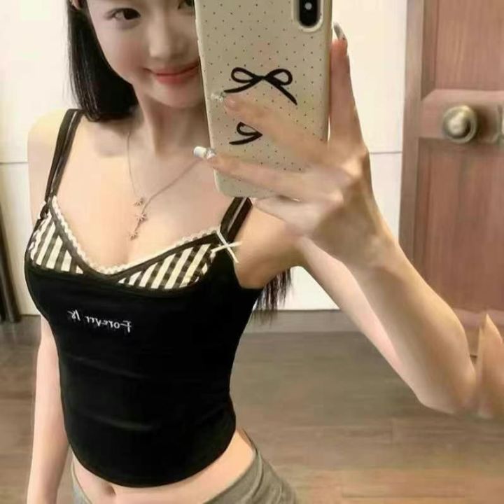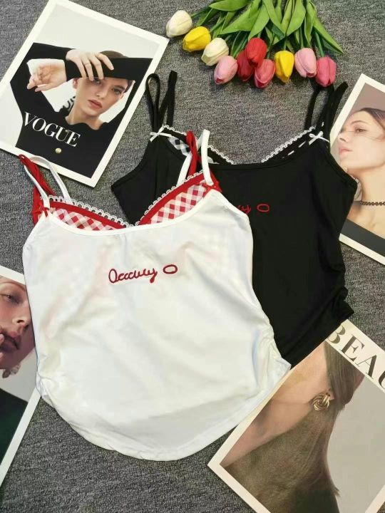 辣妹纯欲风格子蕾丝吊带假两件背心,[爱心]170件左右,白色为主,均码穿70-110斤,原包装️无瑕疵,实体店品质