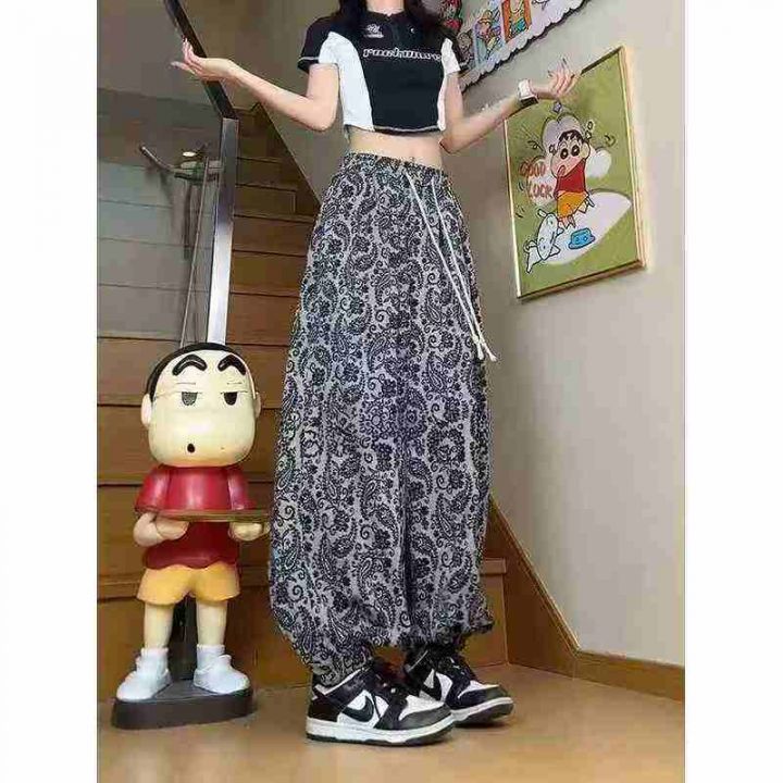 194条,腰果花满印冰丝裤子男女夏季薄款oversize阔腿灯笼裤束脚,独立包装...
