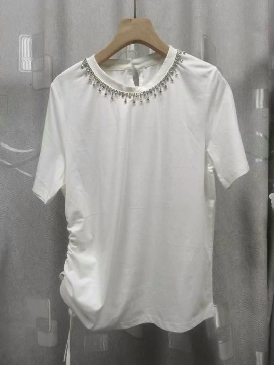 夏季新款时尚百搭气质洋气T恤衫,纯棉高货,小整带杂...