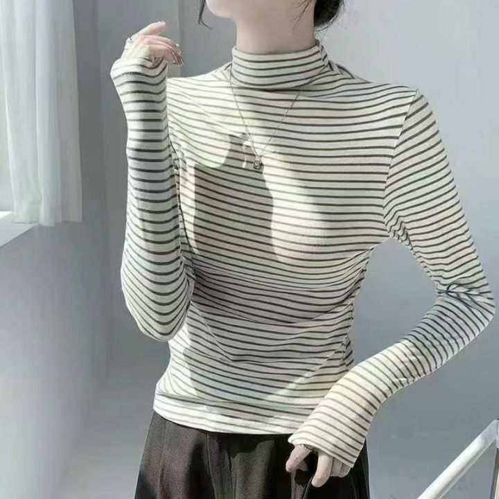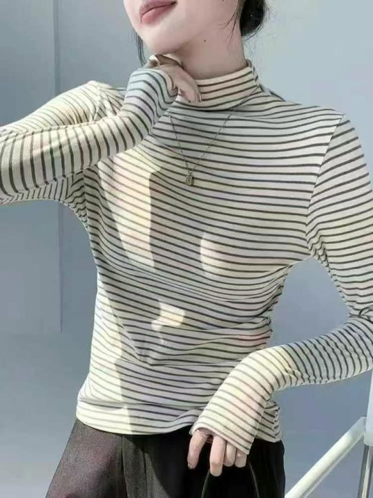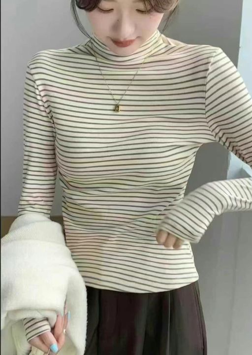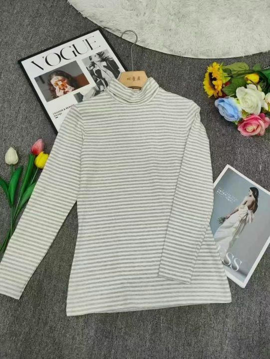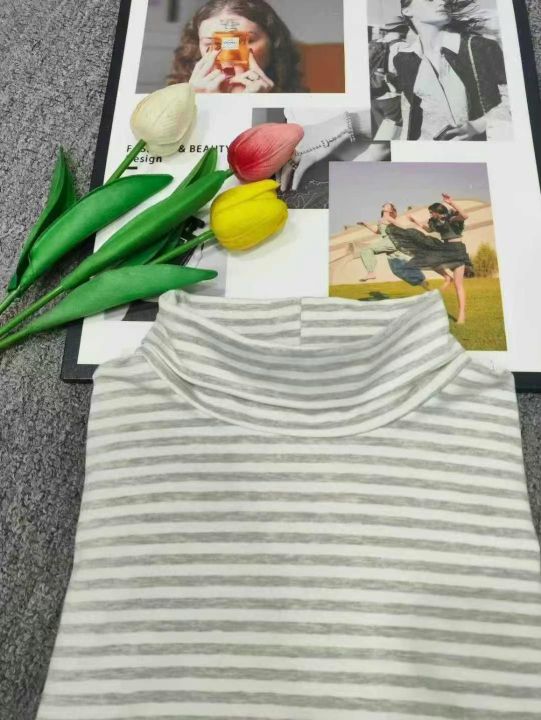工厂回收930件纯棉百搭经典条纹高领打底衫,码数均码,90-130斤可穿,面料柔软舒适有弹力,质量非常好,工厂新货10件一包装。分货加0.5