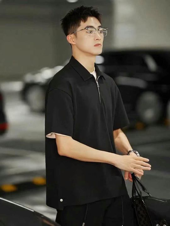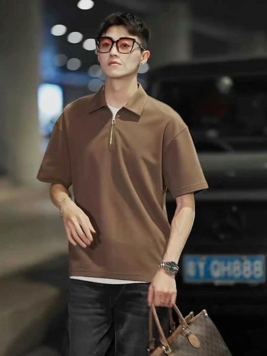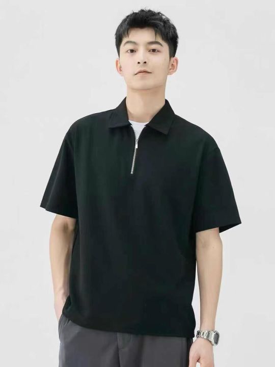 5.8清电商仓回收176件潮男纯色宽松落肩简约拉链翻领上...