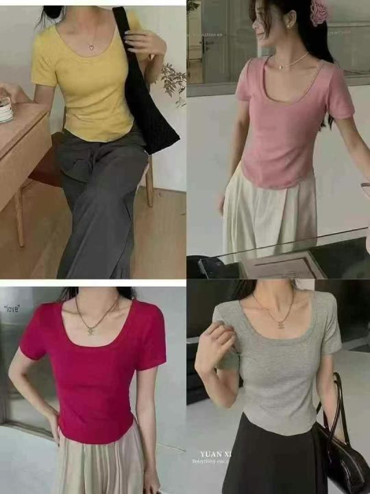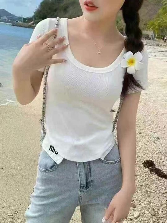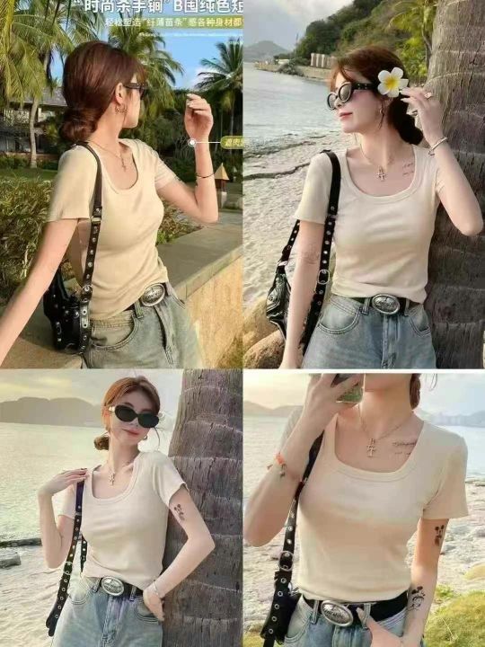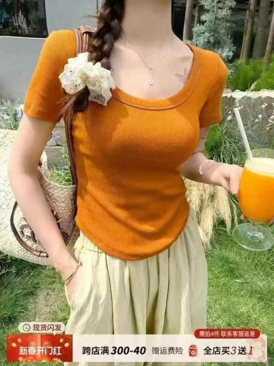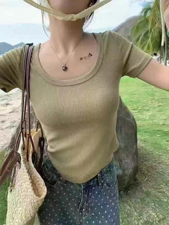 全清6.5冰丝性感短袖t恤女夏季新款修身显瘦辣妹纯欲风...