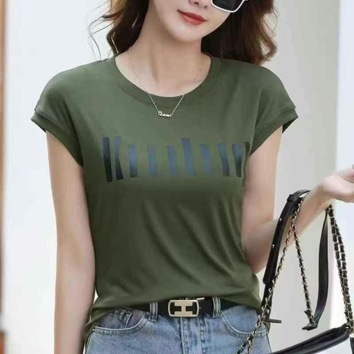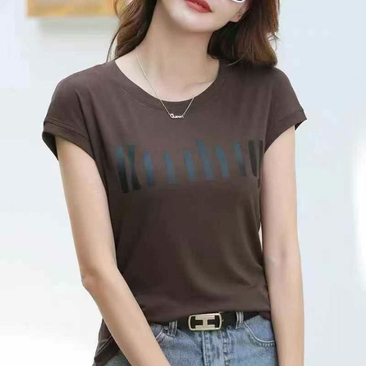 舒适莫代尔字母印花t恤女短袖夏季新款时尚体恤显瘦宽...
