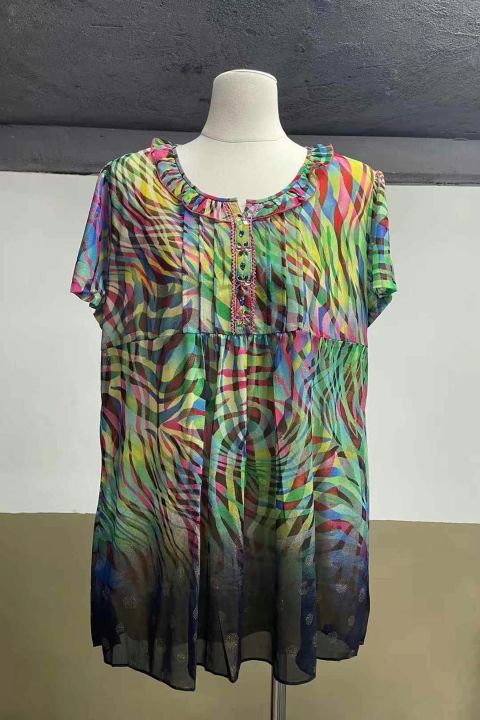 高品质台湾纱淑女妈妈装圆领短袖弹力上衣,双层统一锦...