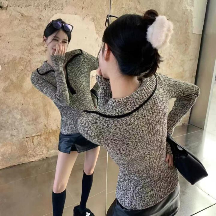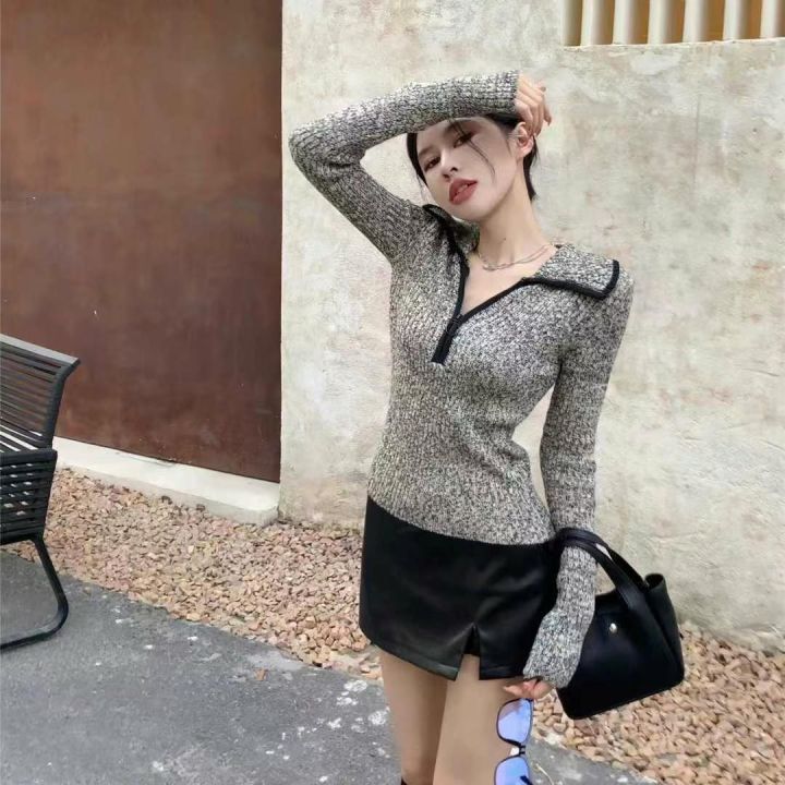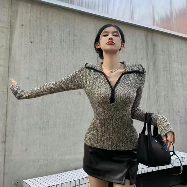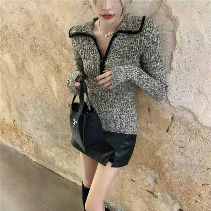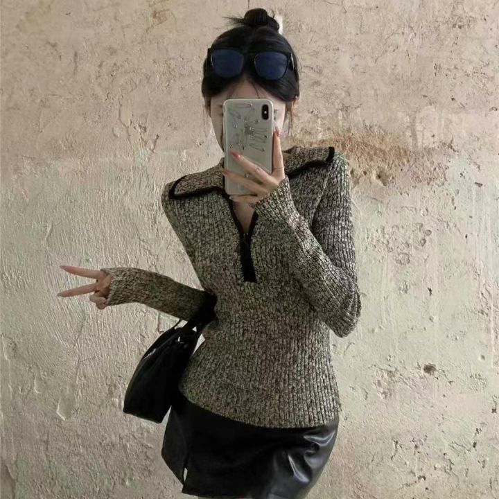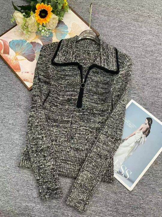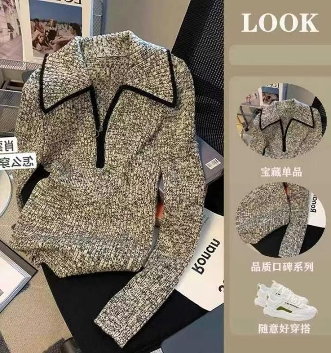 捡漏款,春季新款拉链翻领高级感正肩长袖套头毛衣,独...