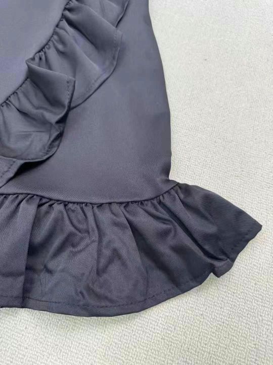 赫本风纯欲辣妹荷叶边泡泡袖收腰显瘦a字小黑裙.单款单色1-4码260件独立包装全清11.8