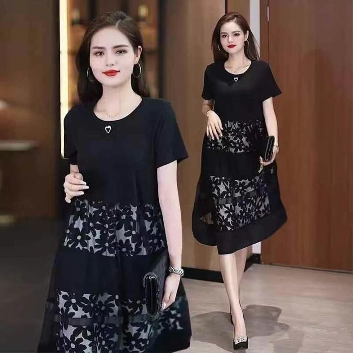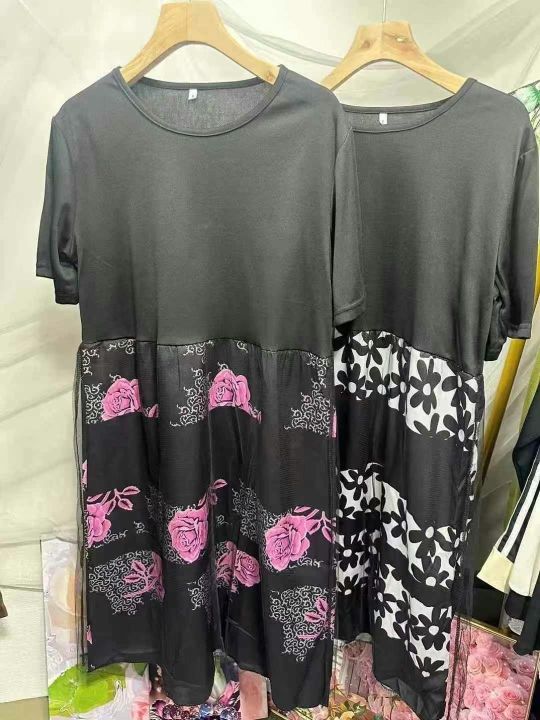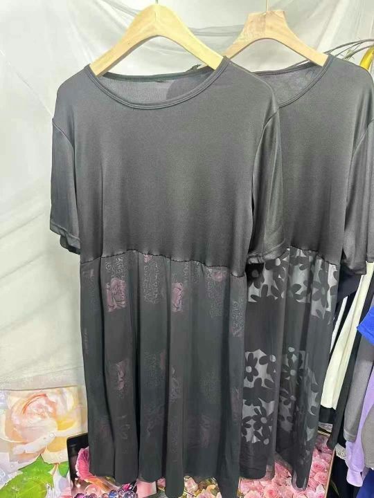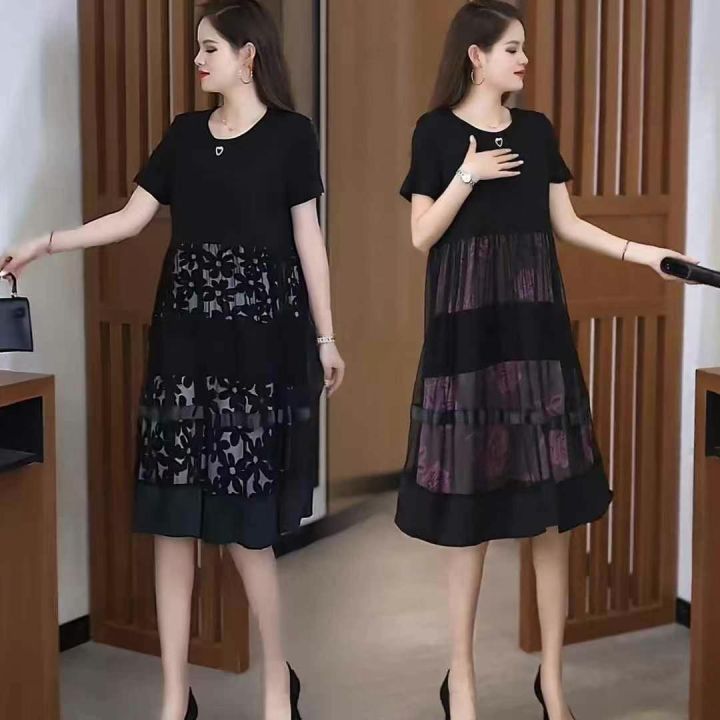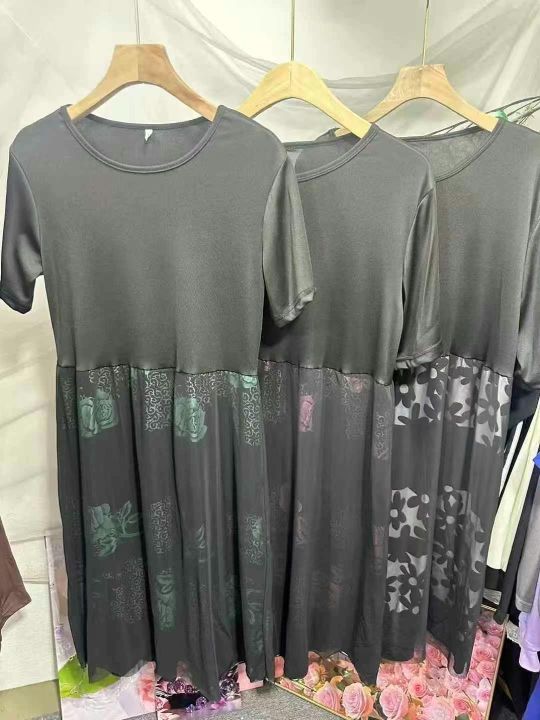 连衣裙洋气中年妈妈装宽松遮肚子假两件网纱裙,2个款几个花型,弹力超大,独立包装货品干净,大概码数1-7码,有些没看到码数,1650件左右,5.5清,分货加1,模特供参考
