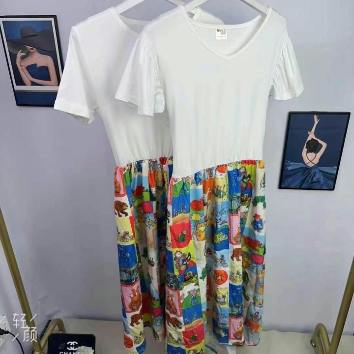 夏日短袖针织上衣拼接碎花半身裙,韩系独特绝美,上衣纯棉裙子冰丝棉,码数M-L-XL-XXL-XXXL码,水袋装,新货 80条左右,全清5.8