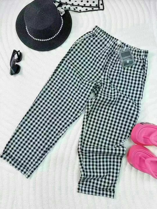 清货价9.8,数量425条宽松版棉麻休闲裤,黑白格子九分...