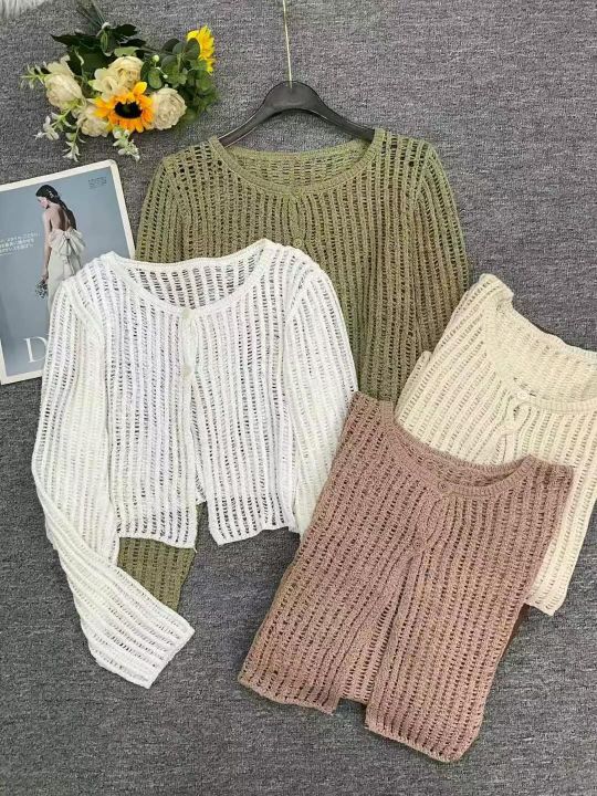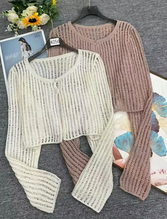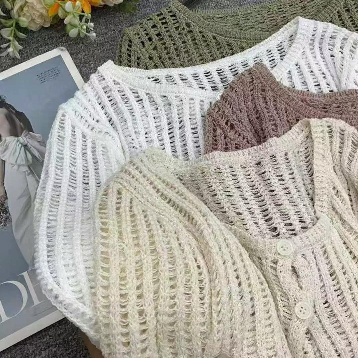 夏季新款冰丝镂空防晒短款针织开衫,独立包装,均码面...